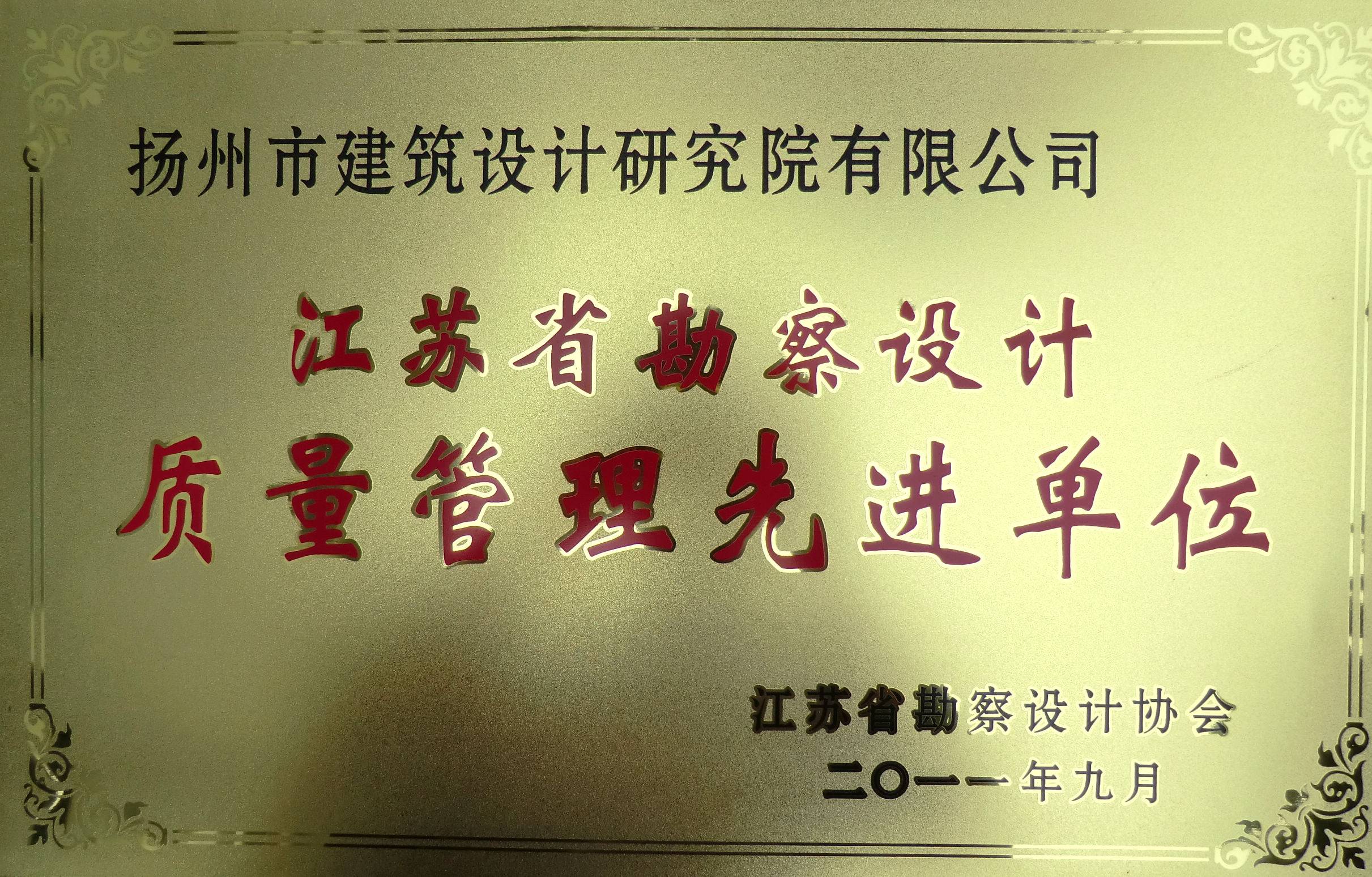 熱烈祝賀我院榮獲江蘇省勘察設(shè)計(jì)協(xié)會(huì)頒發(fā)的江蘇省勘察設(shè)計(jì)質(zhì)量管理先進(jìn)單位