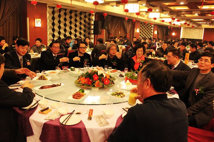 總經(jīng)理王永桃先生致賀酒詞,大家舉起手中的酒杯一起干杯