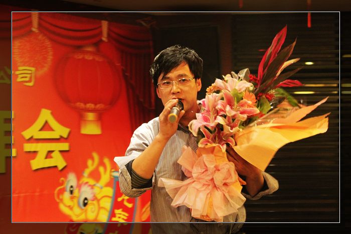 最后我們的董事長(zhǎng)潘長(zhǎng)海先生登臺(tái),先鼓掌后欣賞,董事長(zhǎng)為我們演唱了一首《傳說》