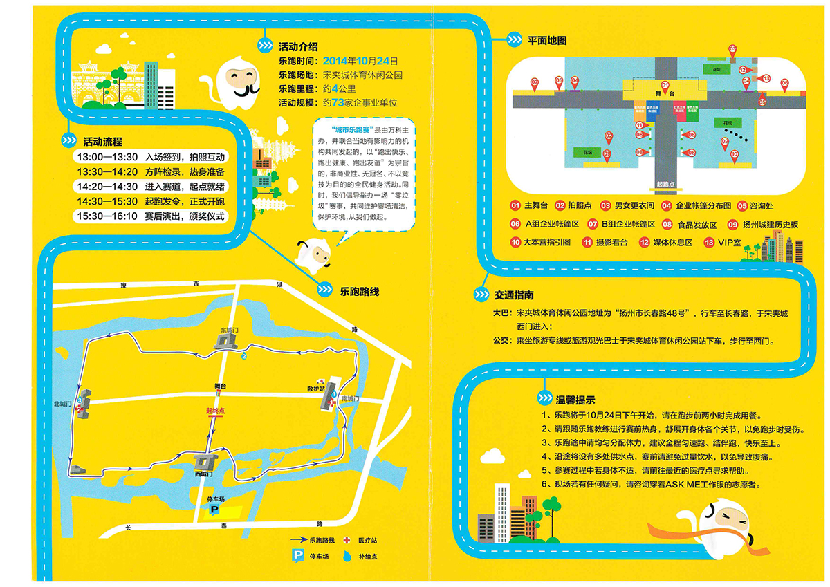 1、請參加樂跑賽的各位同事,于10.24(星期五)下午一點在院大門口集中,全體成員一起前往比賽場地。 2、由于人多,活動現(xiàn)場只有少量更衣室,請大家盡量提前穿戴好跑步的裝備。 3、宋夾城車位極其有限,我院僅僅分配到一個車位,請大家盡量電動車或者自行車出行,也可步行過去。 4、本次樂跑賽的主題是“零垃圾”,所以請大家在比賽現(xiàn)場注意素質,不要亂扔垃圾,所有垃圾全部集中回收。 5、本次賽事的原則是“快樂第一,比賽第二:安全第一,比賽第二”,大家一定要注意安全,量力而行,不要勉強自己,更不要盲目攀比,請做好自我保護措施。